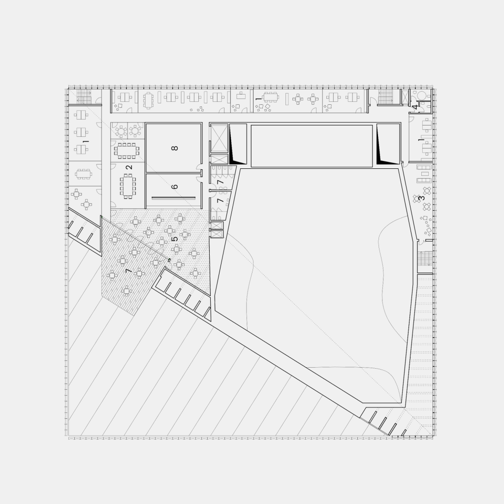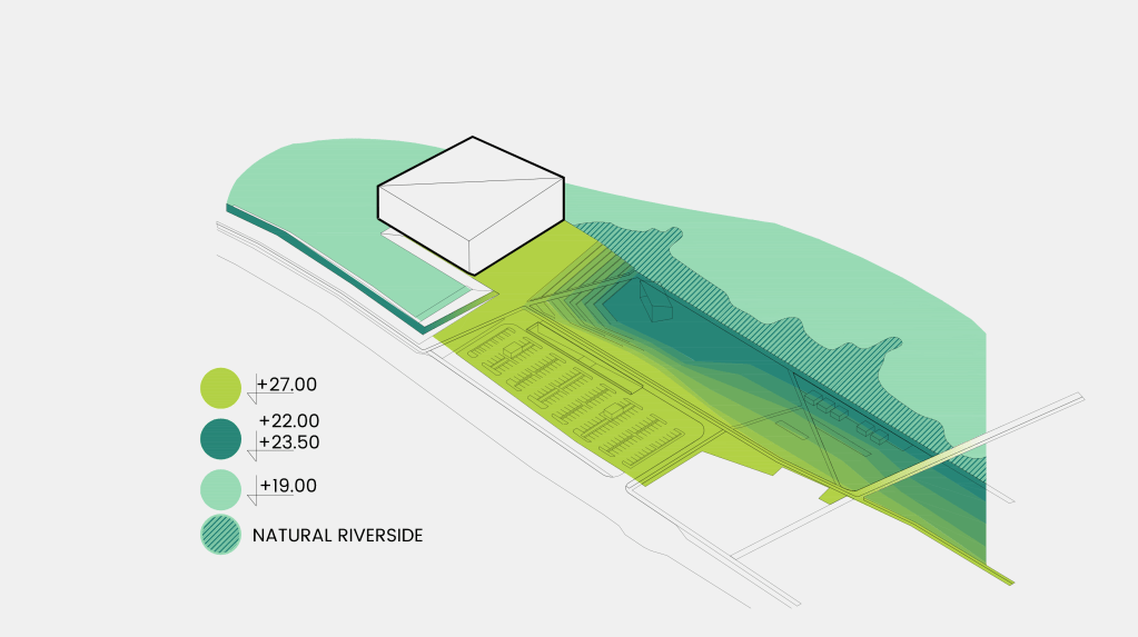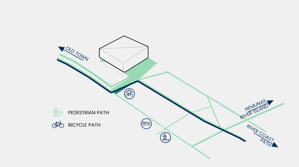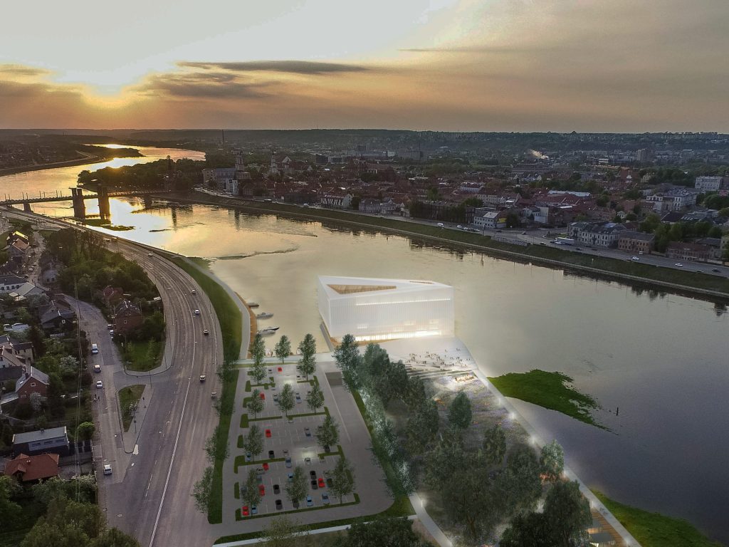 Tūris išskirtinis savo ypatinga lokacija: tai statinys – pusiasalis, konceptualiai priklausantis abiems krantams. Pastato vietą ir charakterį kuriamas urbanistinis – landšaftinis balansas santykyje su Nemuno sala ir jos Žalgirio arena, taip tūris artėja prie senamiesčio, o parkas artėja link Aleksoto esamų/būsimų gyventojų. Pastato atspindys vandenyje tampa svarbia sudėtine statinio išorinės išraiškos dalis. Pagrindinis pastato programos elementas – didžioji salė laisvai komponuojama natūralaus medžio masėmis. Antroji mažesnė salė pakimba virš įėjimo holo. Ši dviejų salių pora apgaubiama skaidraus/pusiau permatomo stiklo gaubtu. Skaityti daugiau.