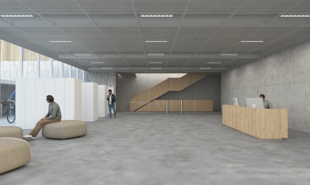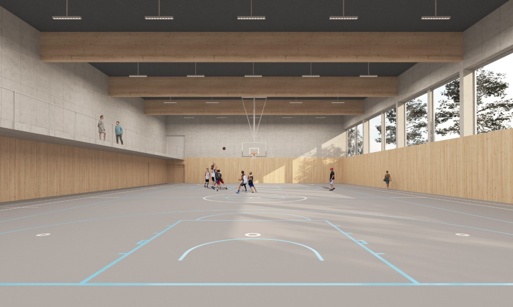 Pastatas susideda iš trijų susikertančių skirtingo aukščio tūrių. Šie tūriai suformuoti atsižvelgiant į vietinius formantus – upę, taką ir mišką. Skirtingas funkcijas talpinantys tūriai stipriausiai reaguoja į vakarinėje sklypo pusėje nusidriekusį dviračių ir pėsčiųjų taką, todėl dėstomi prastumiant. Pulsavimo motyvas atkartojamas ir žvelgiant į pastato fasadus – visų trijų tūriai yra skirtingo aukščio.